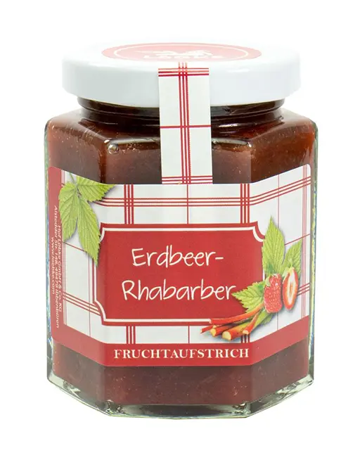 Erdbeer-Rhabarber Fruchtaufstrich 200g Ein leckerer Fruchtaufstrich aus Erdbeeren und Rhabarber.