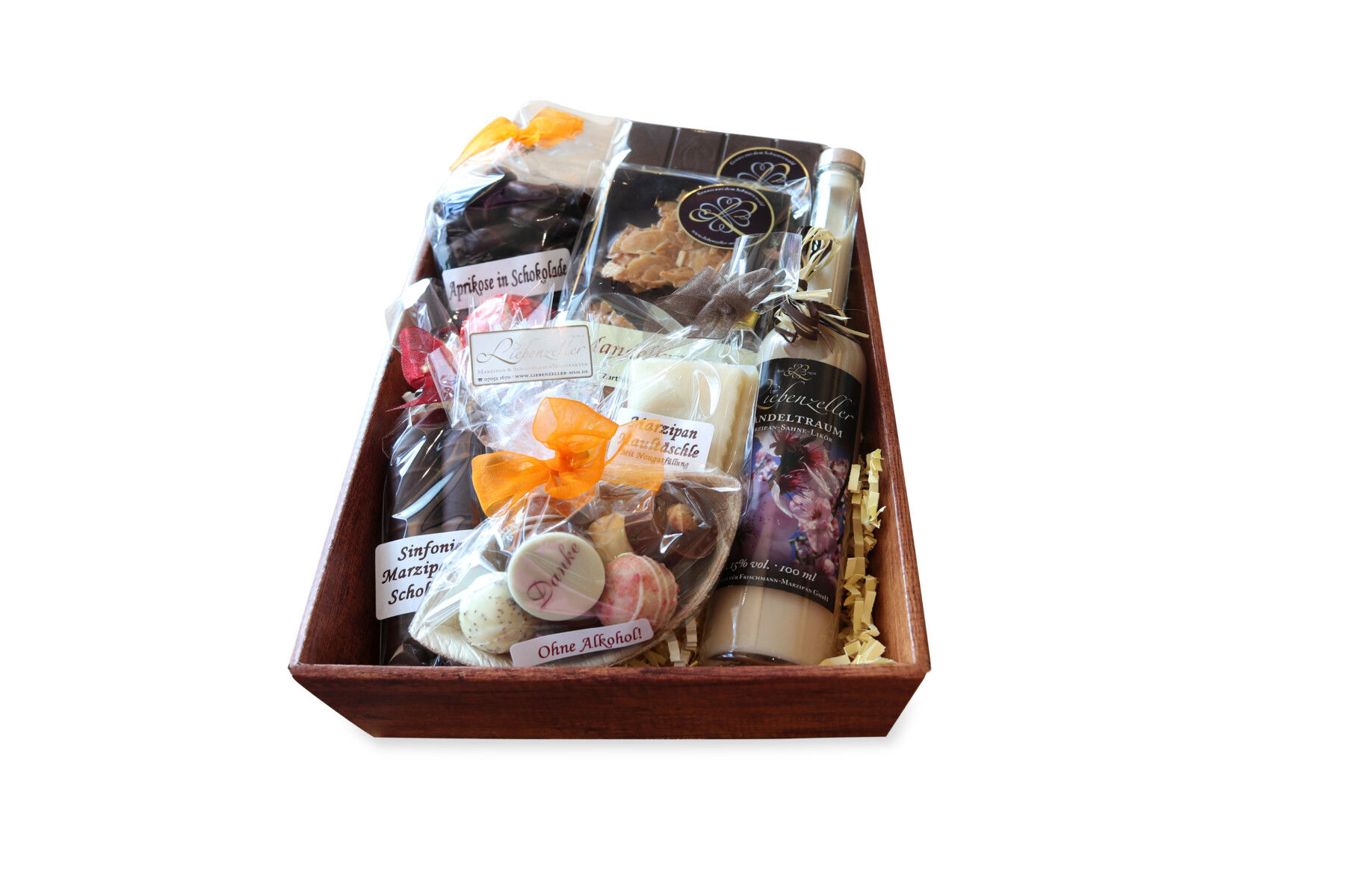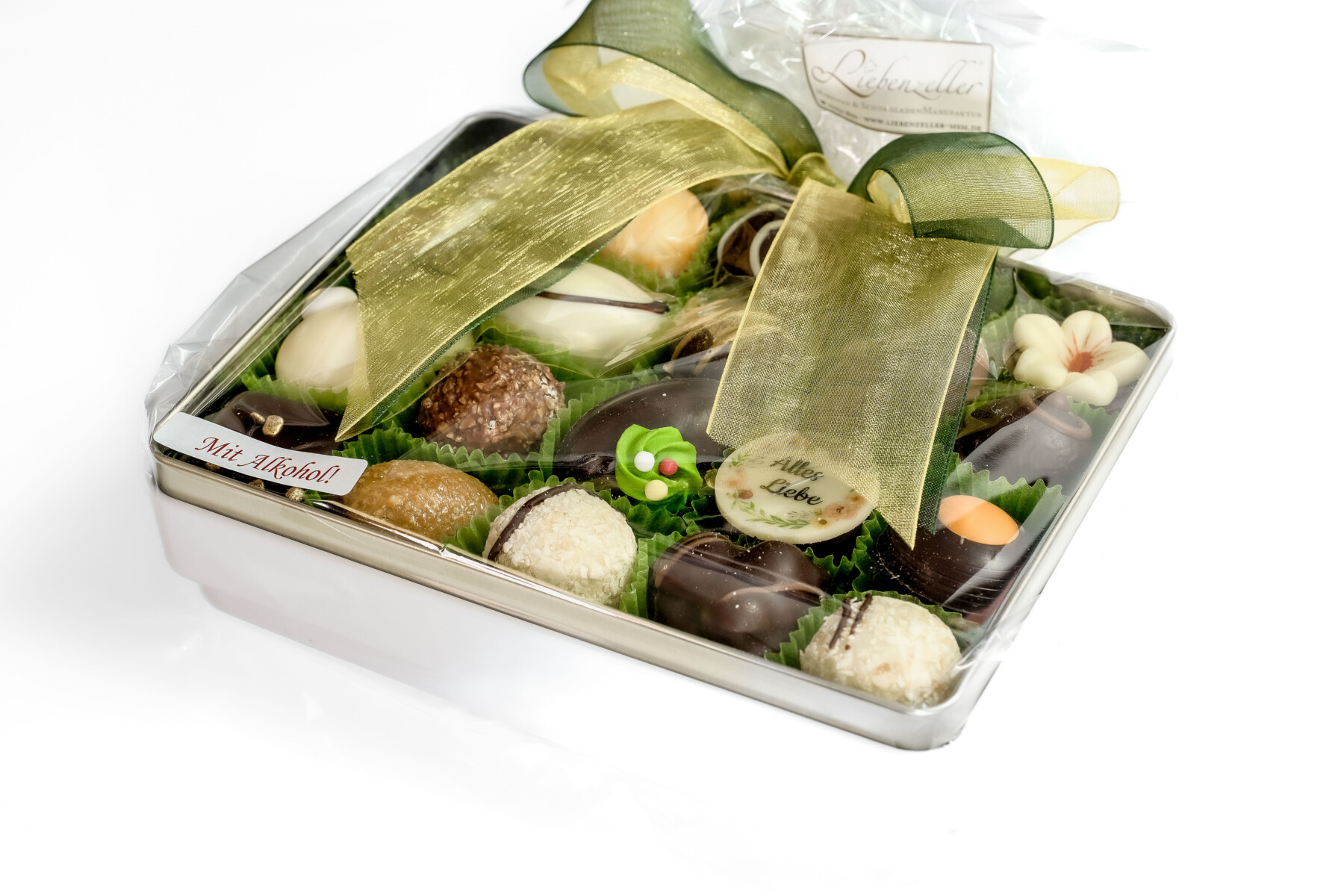 20 Pralinen in ansprechender Schachtel mit cremiger Ganache mit Alkohol