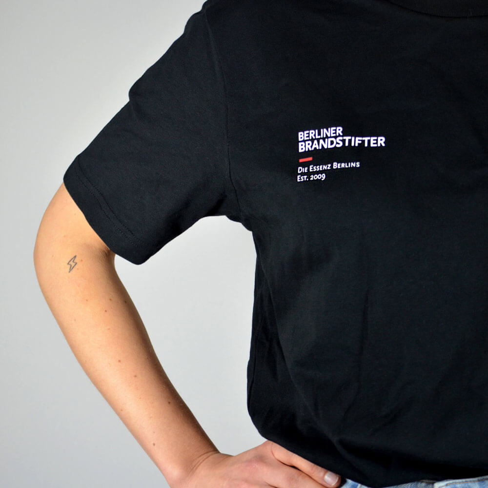 Neben dem sehr weichen, frischen, floralen und weltweit für Geschmack und Design ausgezeichneten Berlin Dry Gin erhält man hier das coole neue schwarze Unisex Shirt in einem lässigen Oversize-Schnitt. Die Vorder- und Rückseite ist mit dem Berliner Brandstifter Logo bedruckt. Hergestellt wurde das Shirt in Zusammenarbeit mit einem lokalen Berliner Unternehmen. Es ist OEKO-TEX Standard 100 zertifiziert und PETA Approved VEGAN.
