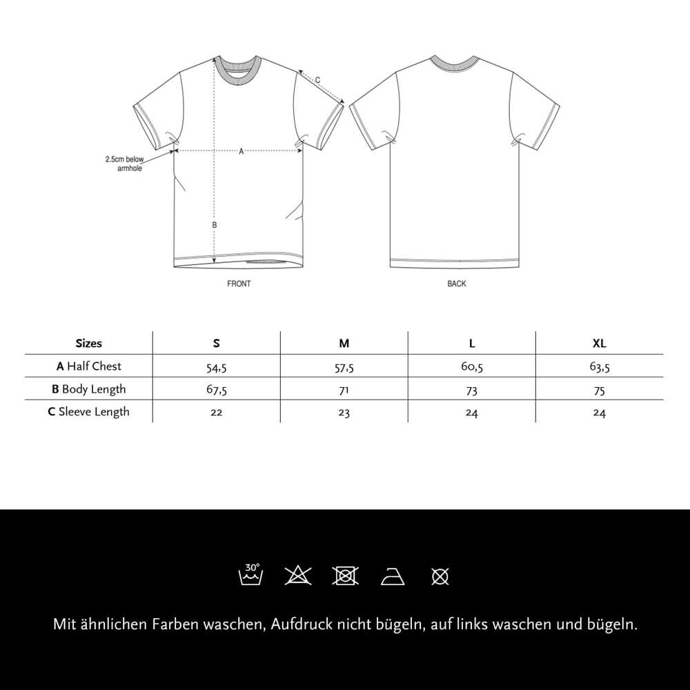Zugehörige Größenangaben und Pflegehinweise für das Shirt findet ihr in der Bildauswahl.