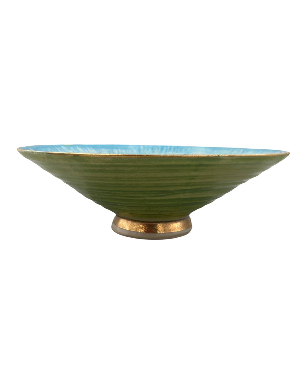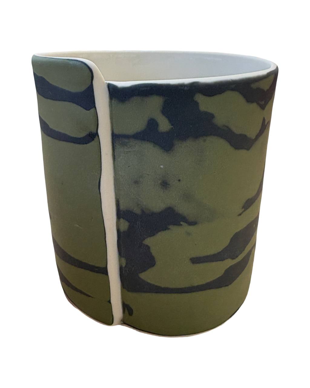 Die Vasen werden bei 1230 Grad im Elektroofen gebrannt. Sie sind innen transparent glasiert und außen bleibt der geschliffene, matte Porzellanscherben.