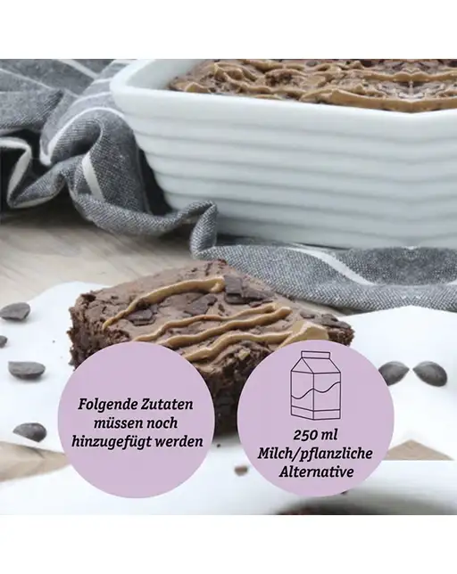 - Schnell und einfach: Die Schokokuchen Backmischung mit Milch oder einer pflanzlichen Alternative anrühren – in die Backform und fertig!